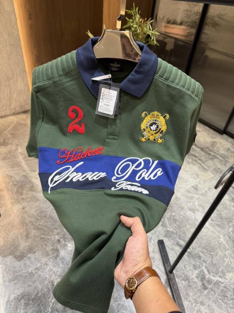 Hugo Bos s Inkblue Premium 240 gsm interlock compact cotton fabric Polo Tshirt with Front Design and Emboss Logo 3367